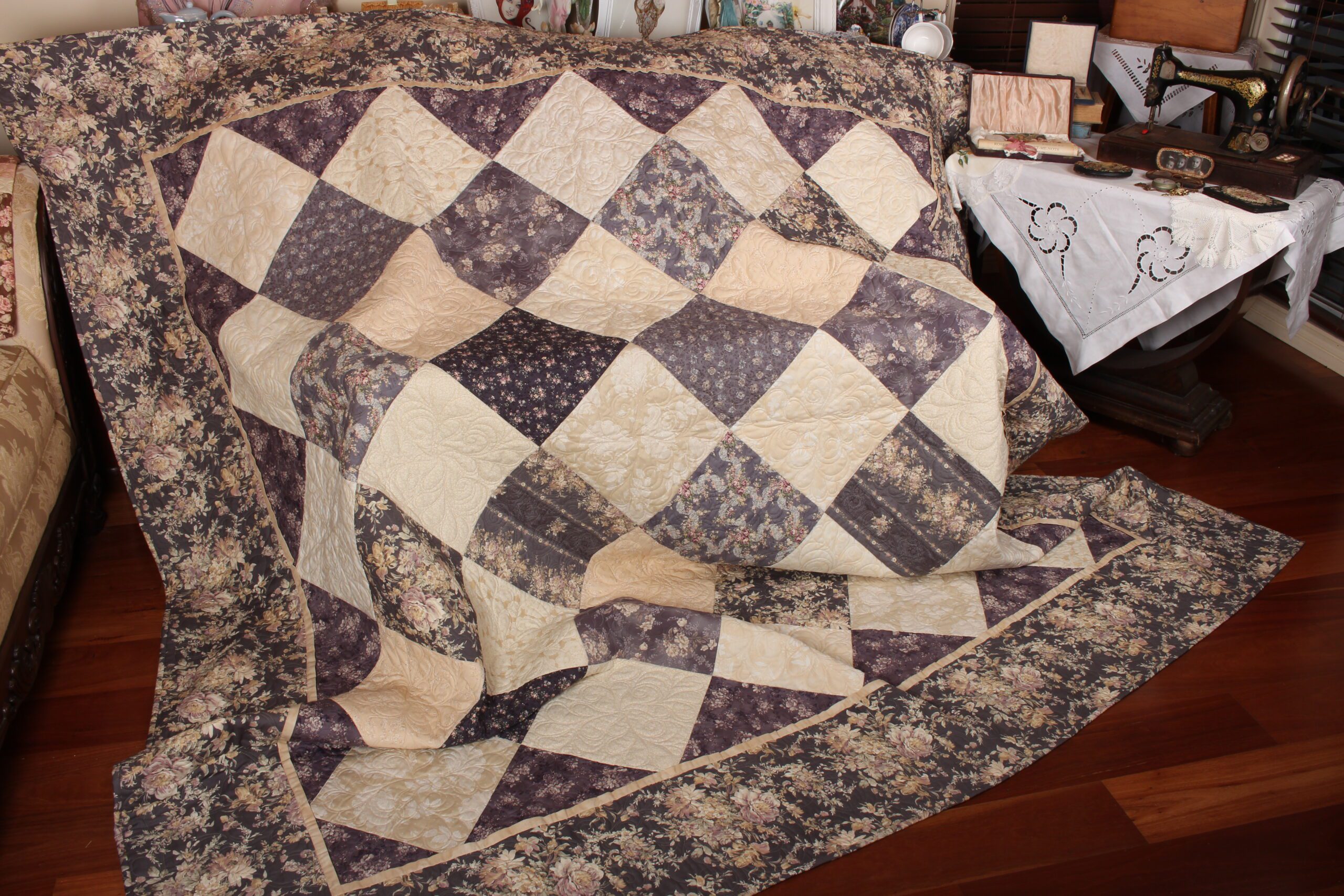 Such a lovely quilt! And simple to make too. Surprise yourself with the ease with which you put this lovely quilt together. Start with a range of sophisticated fabrics in your favourite colours. You will need a variety of prints in co- ordinating colours half light and half dark. Go for subtlety as in this quilt, or be bold and choose a strong vibrant colours if you wish to make a statement! Whichever way you go, this design is a sure-fire way to make a quilt that is relatively simple, elegant, and has a lasting appeal. An ideal man’s quilt too.