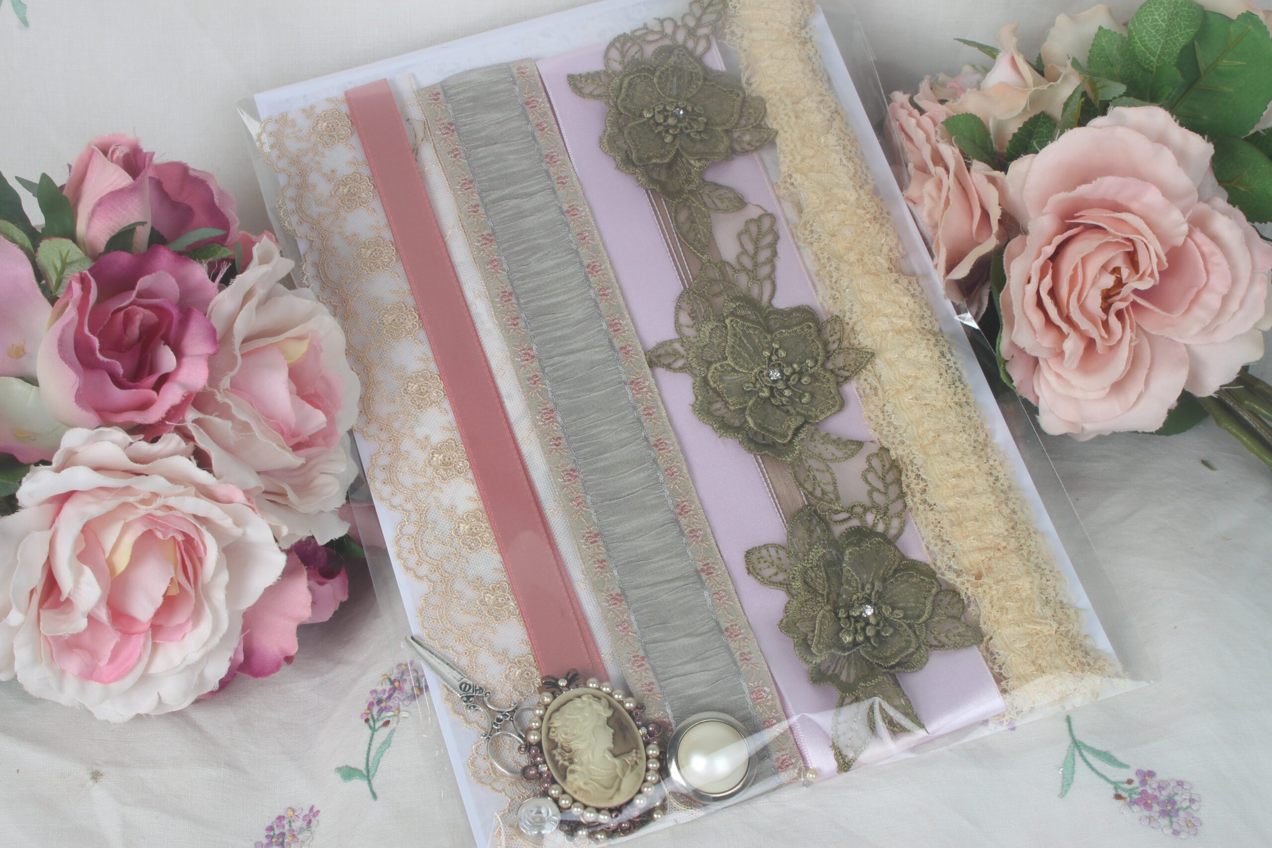 Exquisite laces, ribbons, silk ribbons, vintage buttons, braids, all packed into delicious treasure packs.