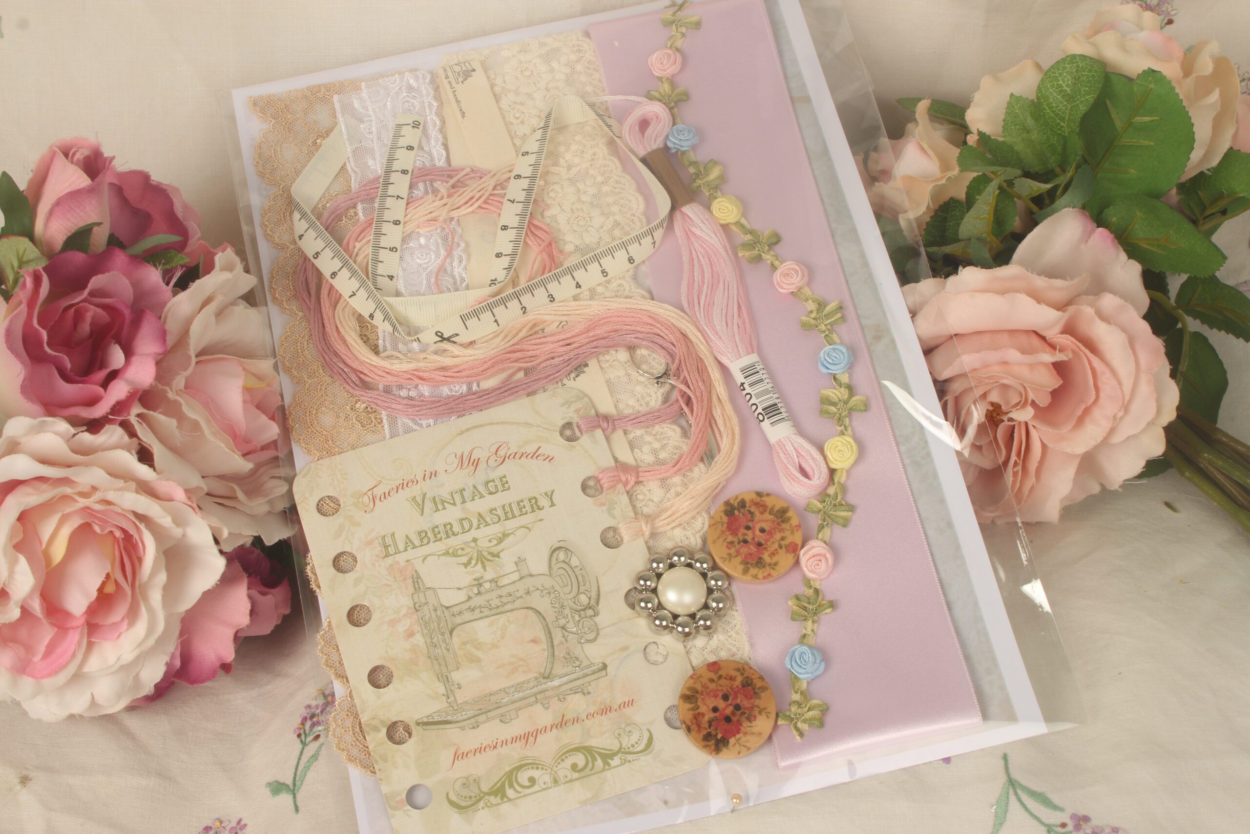 Exquisite laces, ribbons, silk ribbons, vintage buttons, braids, all packed into delicious treasure packs.
