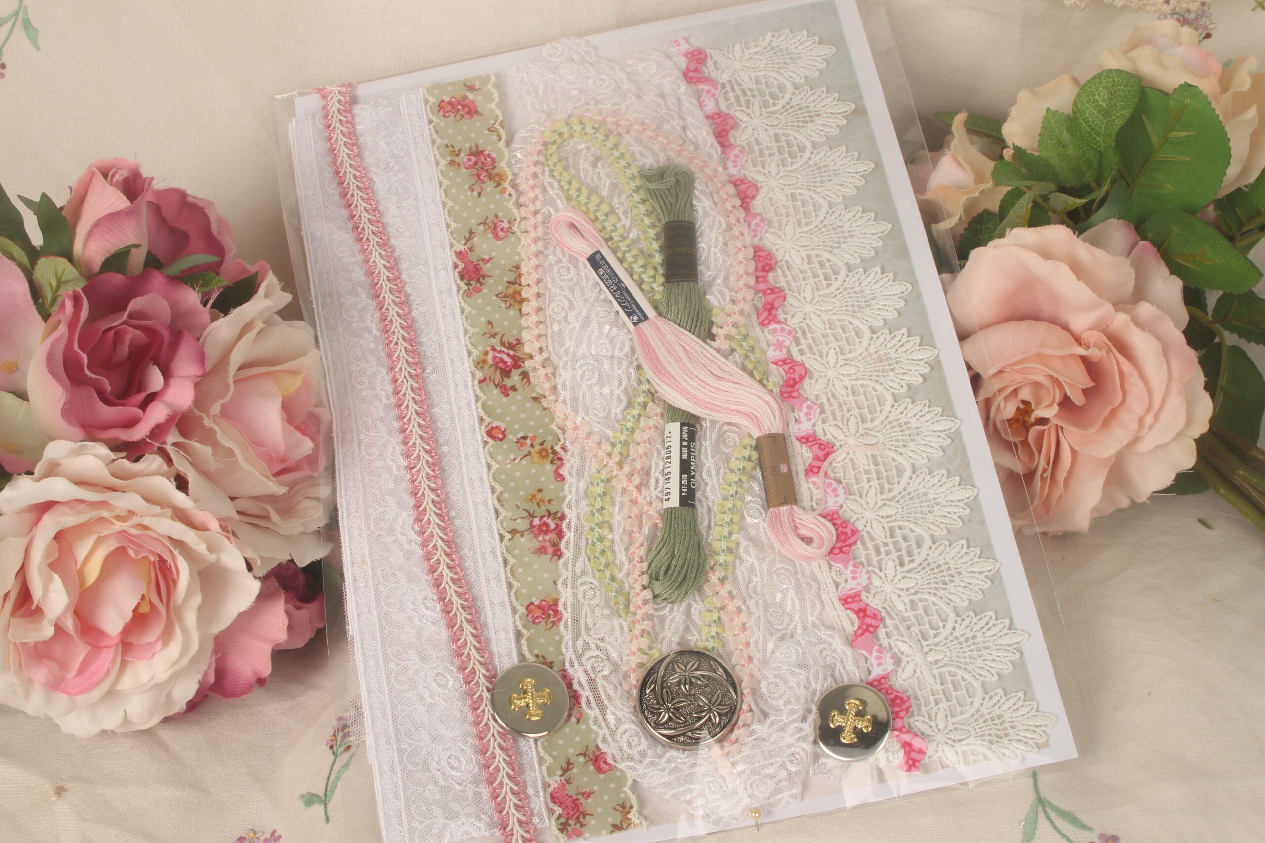 Exquisite laces, ribbons, silk ribbons, vintage buttons, braids, all packed into delicious treasure packs.