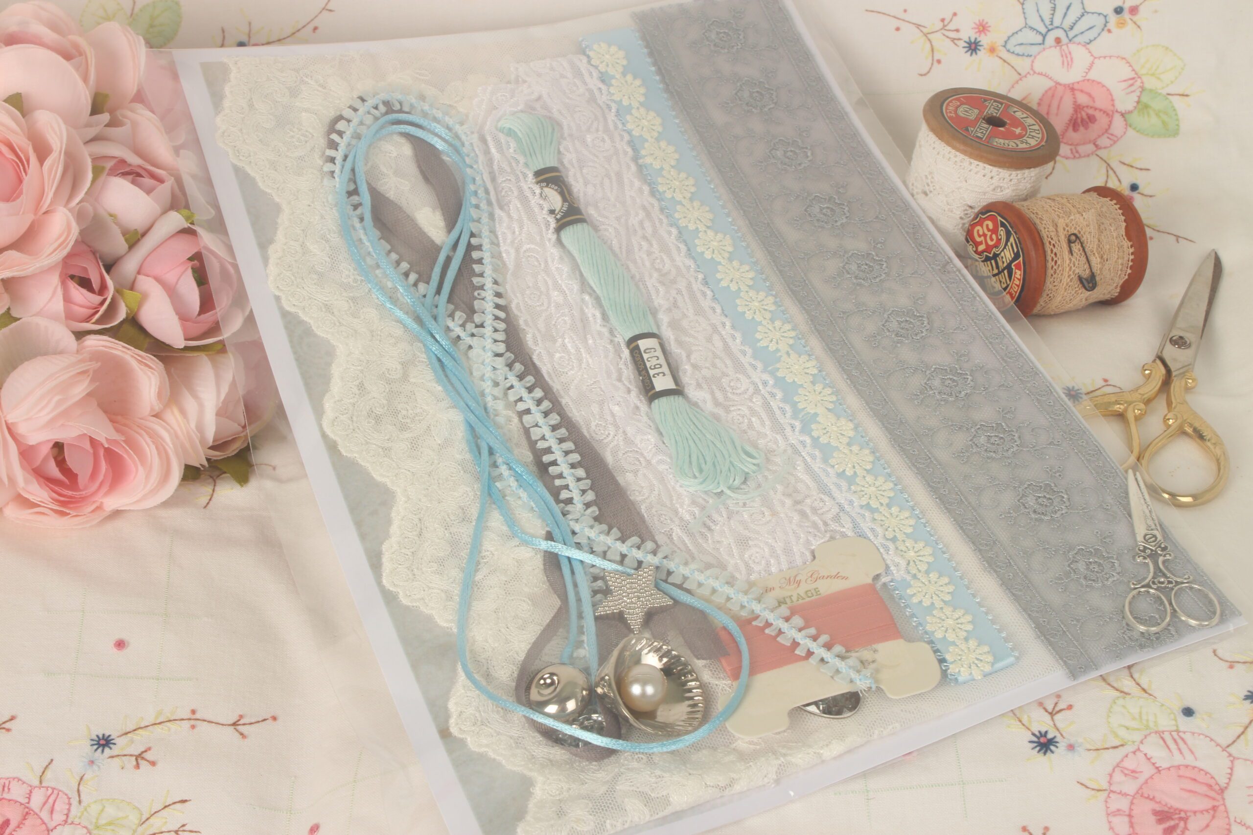 Exquisite laces, ribbons, silk ribbons, vintage buttons, braids, all packed into delicious treasure packs.