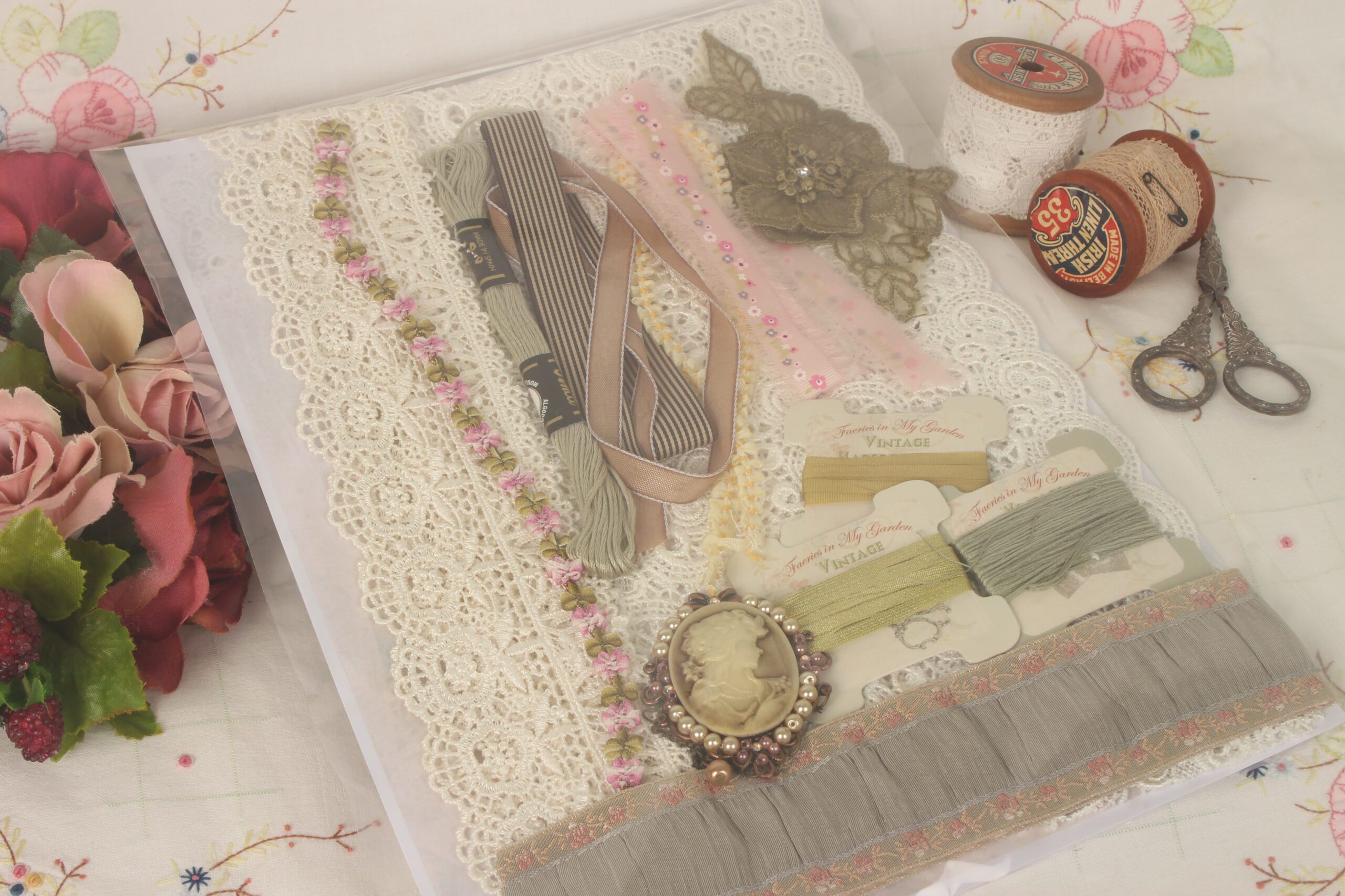 Exquisite laces, ribbons, silk ribbons, vintage buttons, braids, all packed into delicious treasure packs.