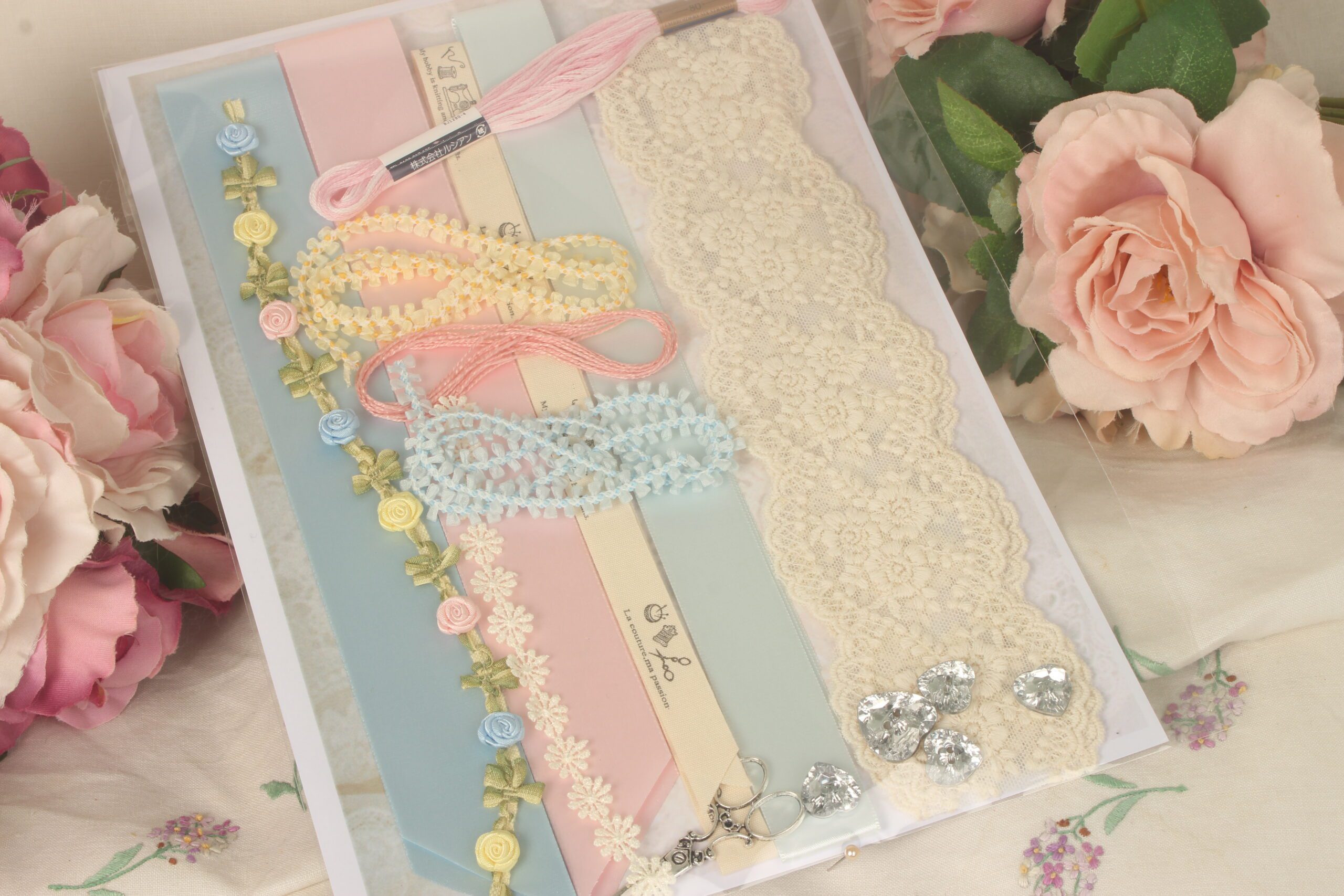 Exquisite laces, ribbons, silk ribbons, vintage buttons, braids, all packed into delicious treasure packs. We have only six of the “Ingrid” pack available.