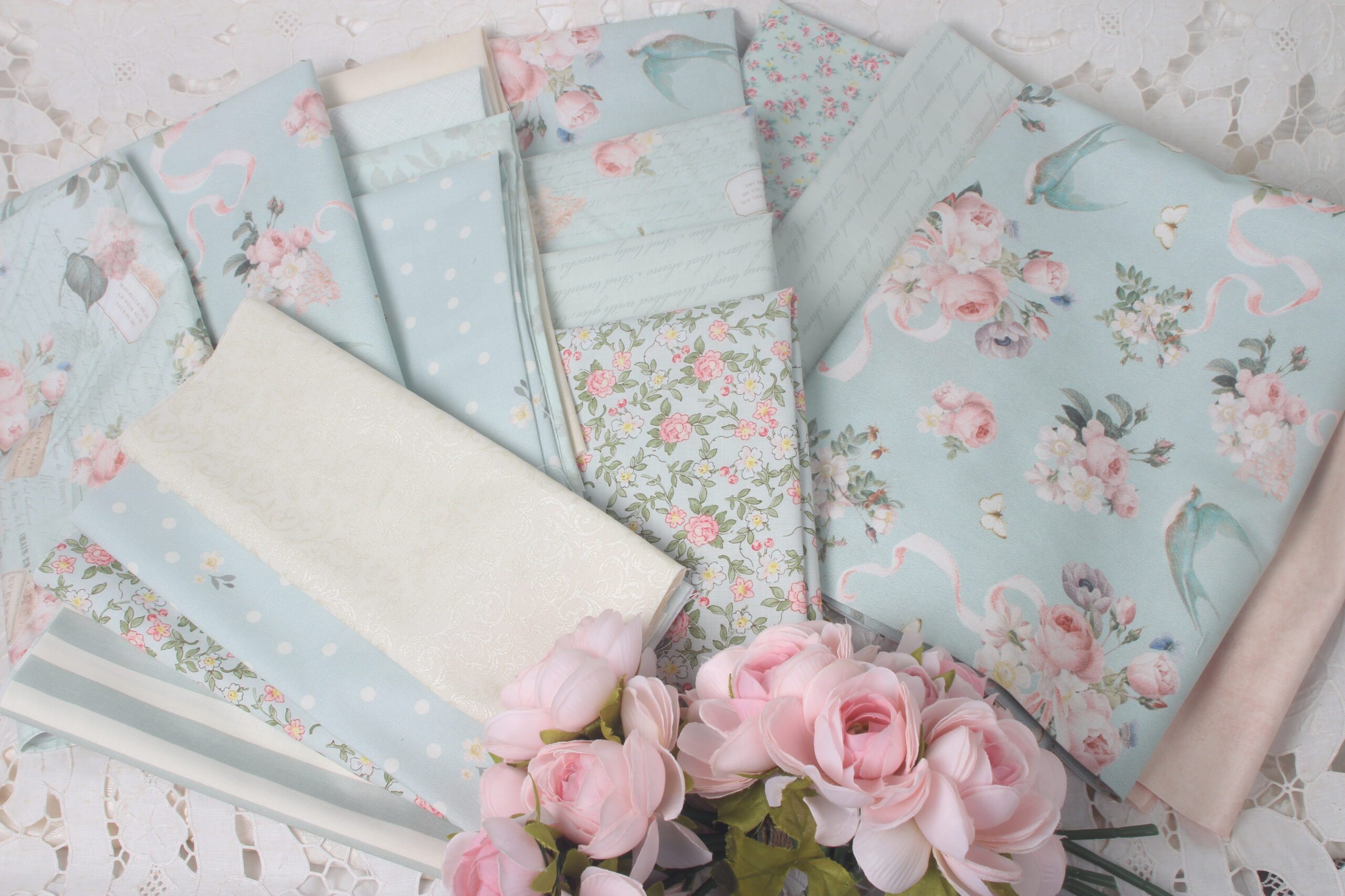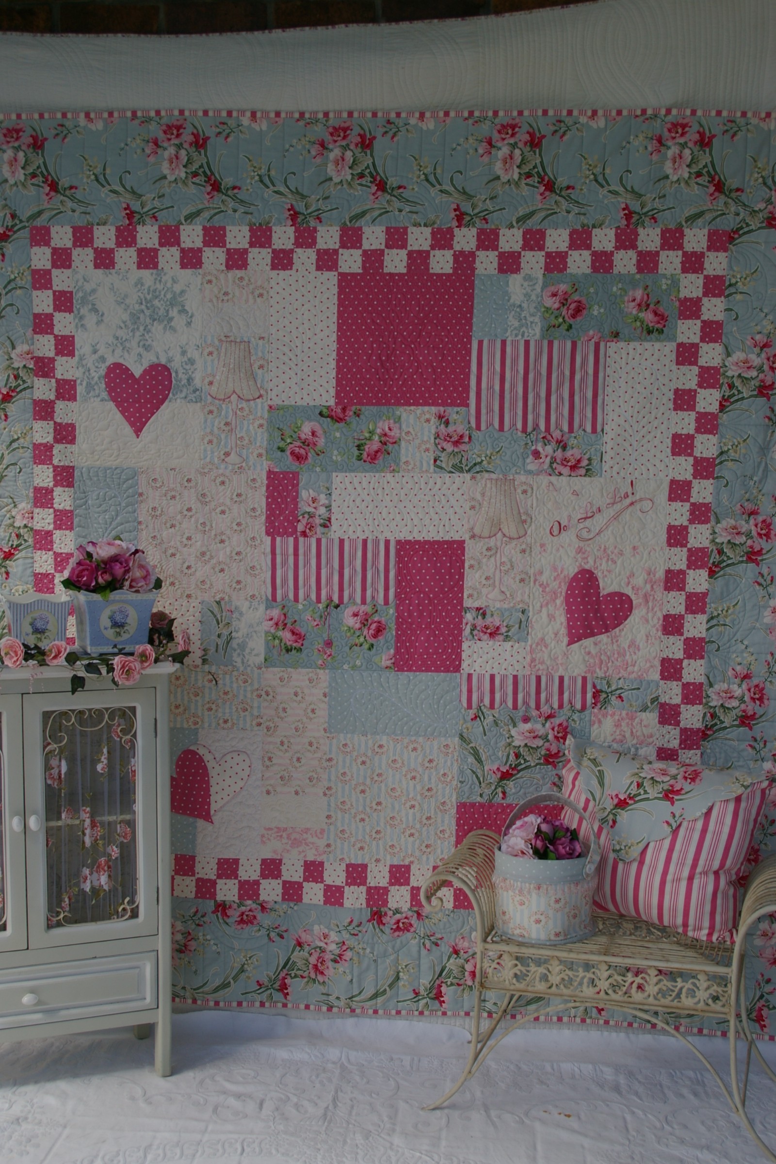 Make one in either blue, cream or pink, or, if you want to enlarge it, why not combine the cream with either blue or pink, or even the blue and pink together, to give you twice the quilt and twice the joy?