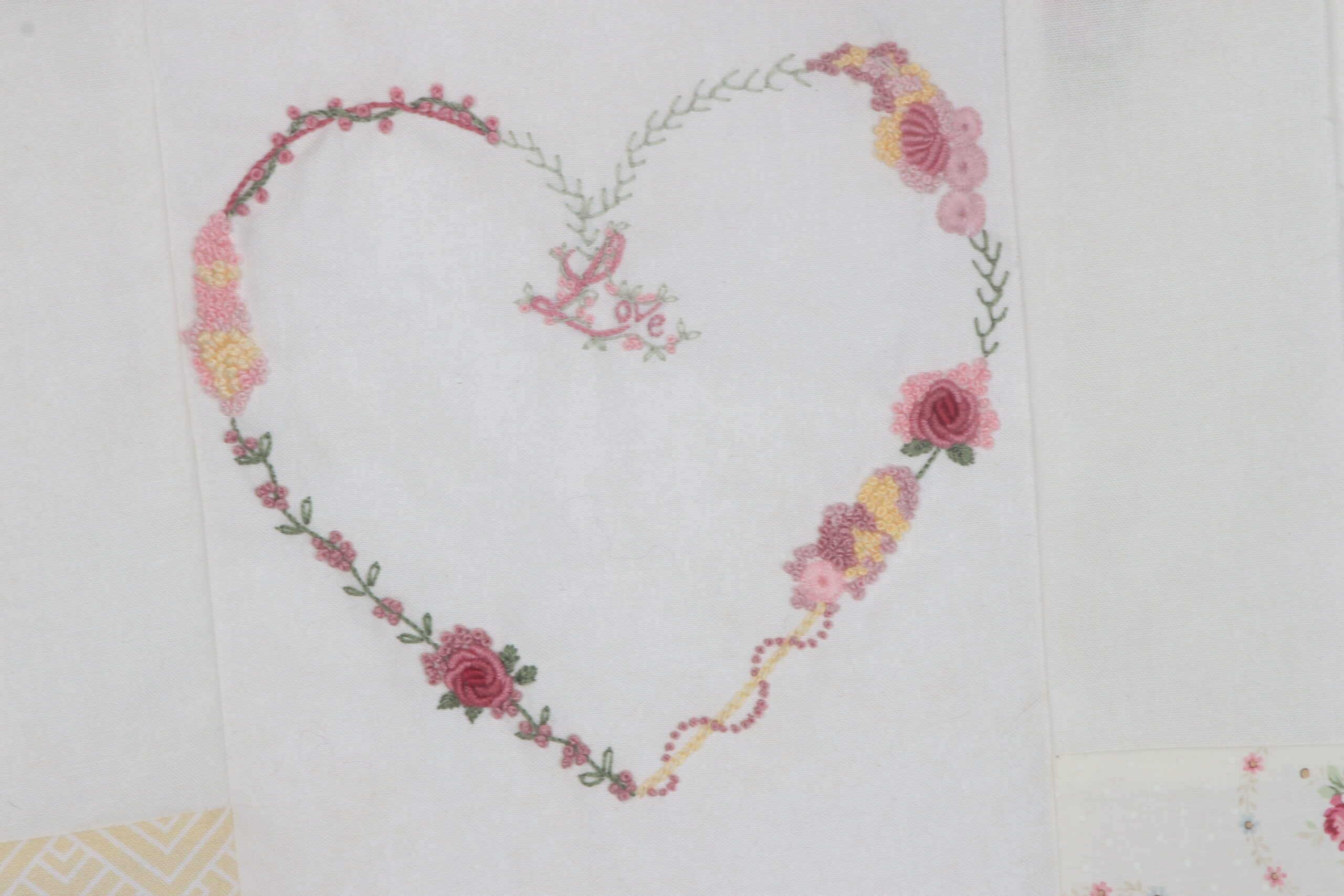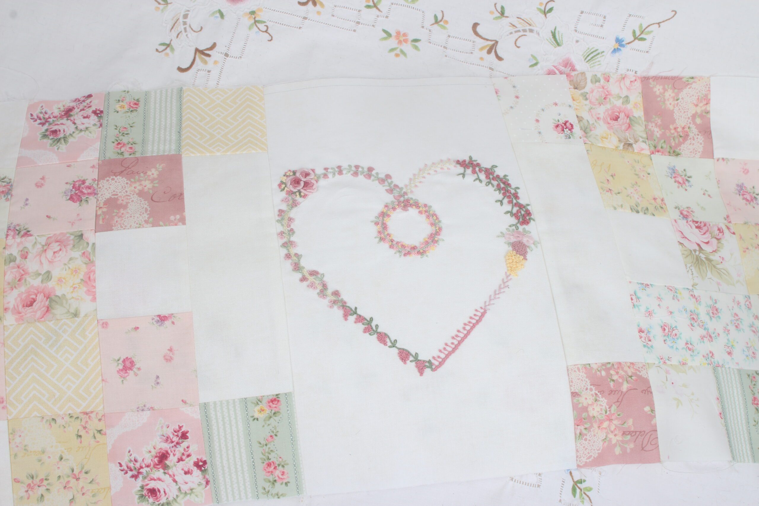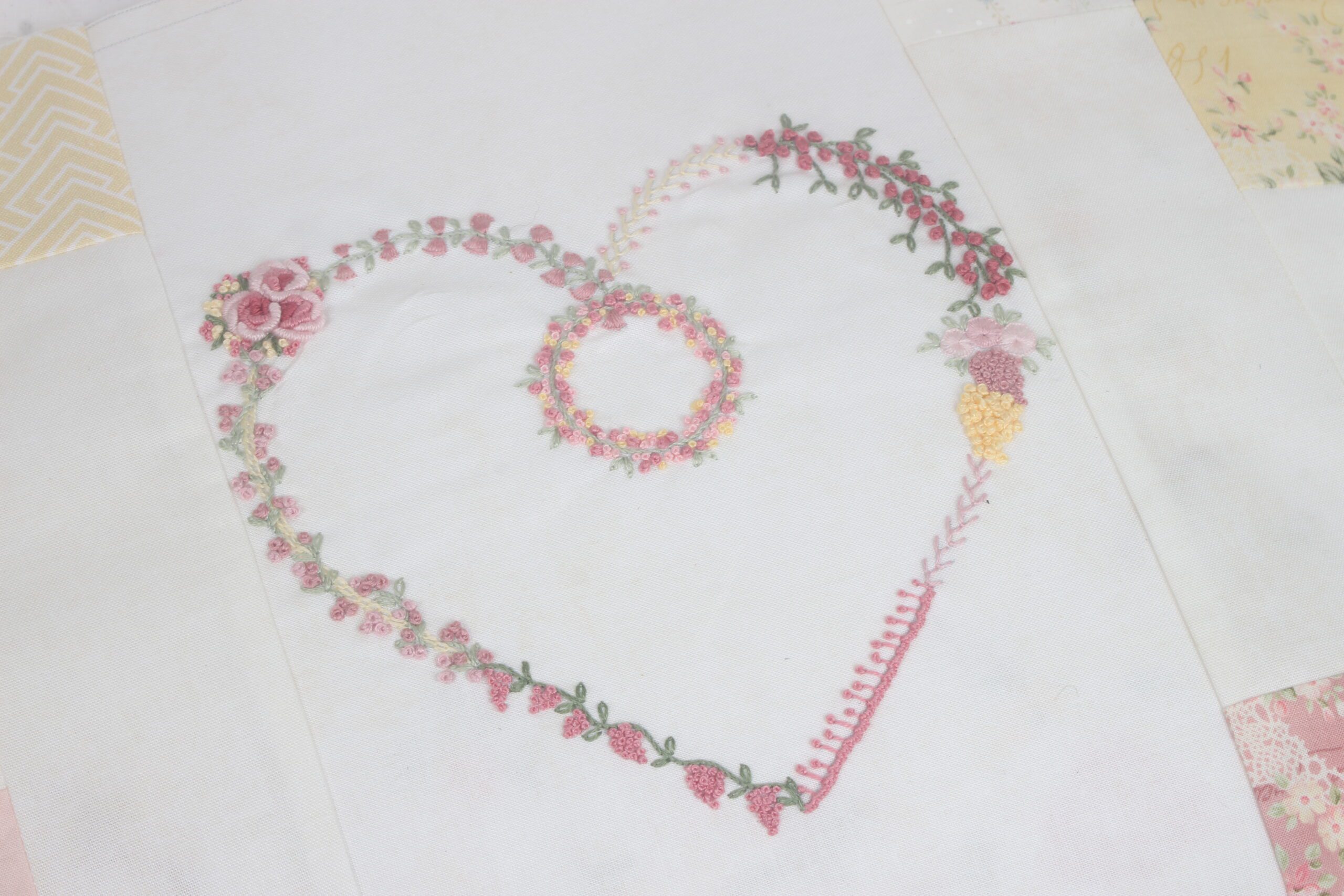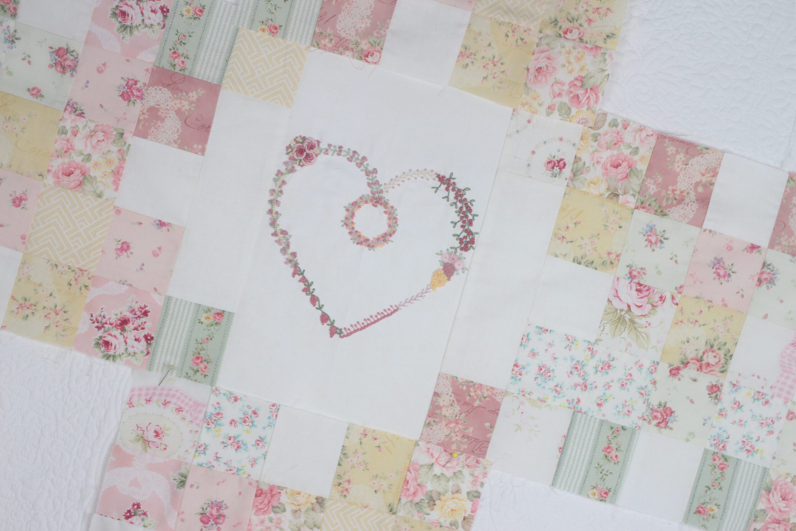 There’s nothing as charming as a traditional Irish chain quilt. We are taking this quilt design a little further, by adding embroidered hearts in the white spaces.
